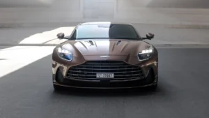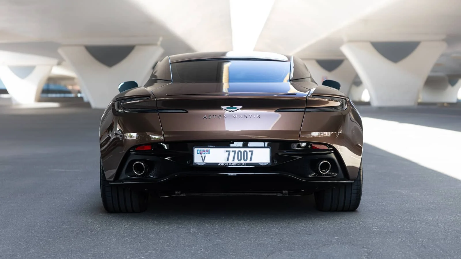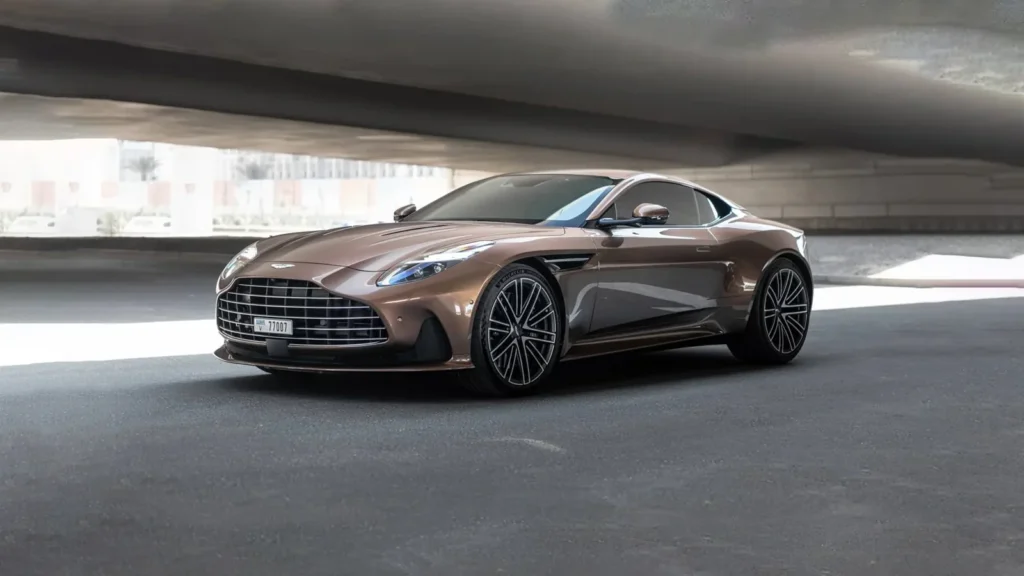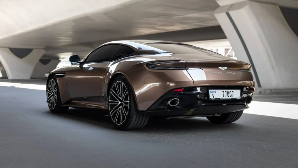 Book your Aston Martin DB12 Brown/Gold rental in Ras Al-Khaimah today!
