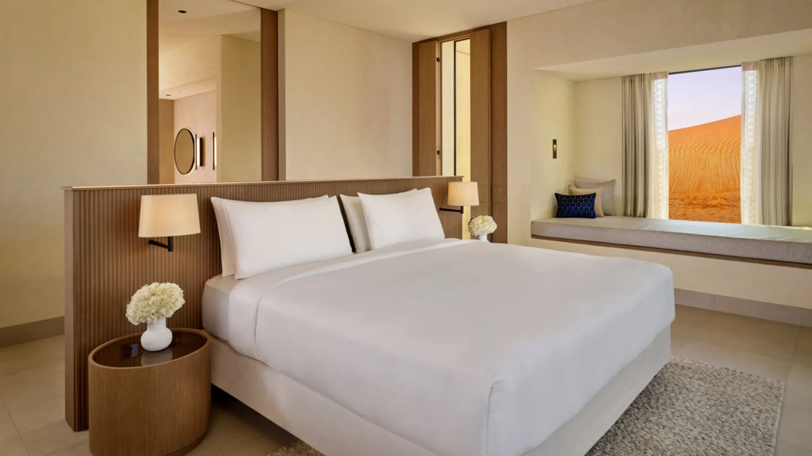 Guests can enjoy falconry displays, camel rides, archery, and stargazing in a calm and lightly populated desert environment. With high-end dining, spa services, and desert safaris, it’s a well-rounded escape for both relaxation and light adventure just a short drive from Ras Al Khaimah city.