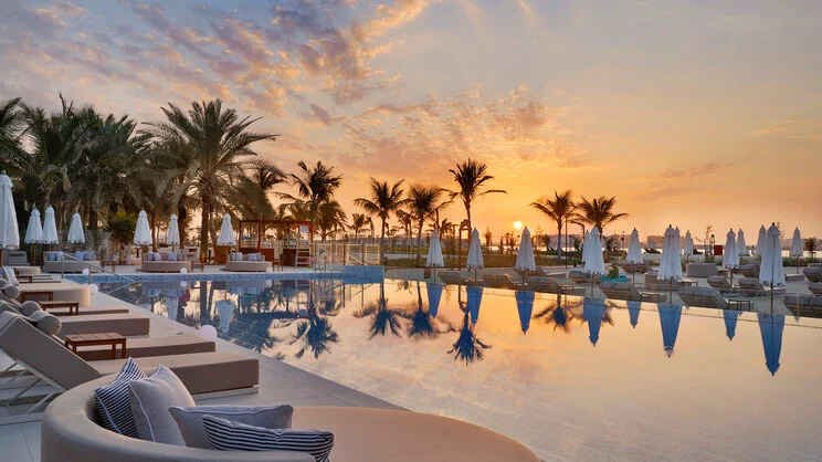 This resort is known for its spacious rooms, exceptional service, and multiple fine-dining options—great for pampering stays or romantic escapes. With a signature spa, golf course access, and oceanfront pools, Waldorf Astoria RAK combines luxury, relaxation, and coastal charm in one serene setting.